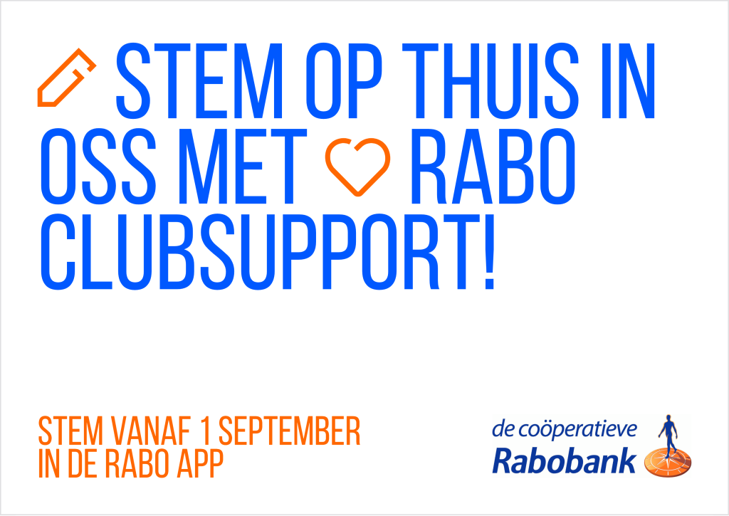 Elk jaar organiseert Rabobank de Rabo ClubSupport actie om clubs en verenigingen een financieel steuntje in de rug te geven. Tijdens de Rabo Clubsupport actie kun je als Rabo-lid stemmen op jouw drie favoriete clubs. Thuis in Oss doet dit jaar ook weer mee met de Rabo Clubsupport actie. Mogen we rekenen op jouw stem? Dat zouden we fantastisch vinden! Stemmen kan van 1 t/m 23 september in de Rabo App of via de website van de Rabobank.